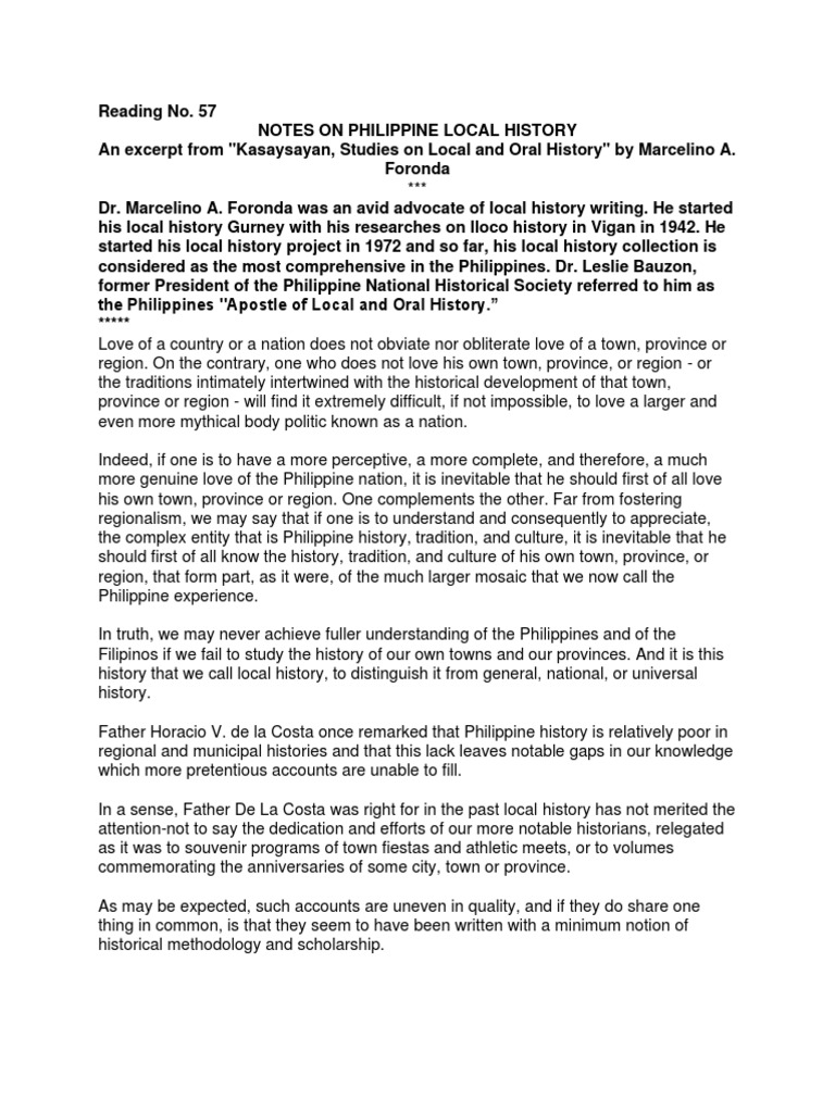 Reading No. 57NOTES ON PHILIPPINE LOCAL HISTORY An Excerpt From